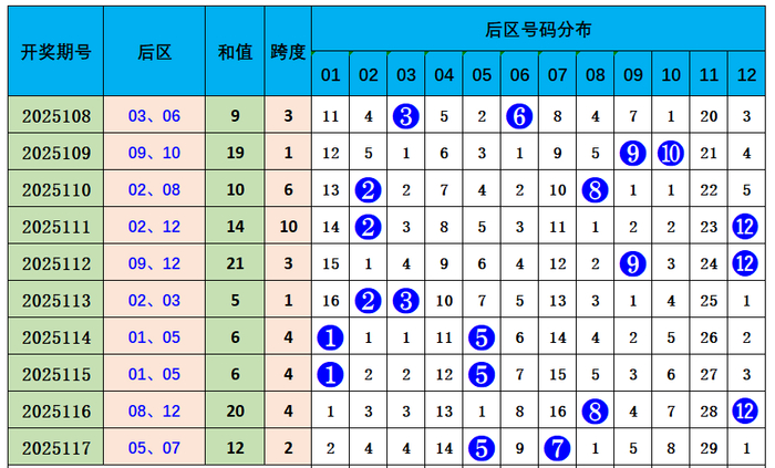 一区(01-12):上期该区开出2个奖号,近10期开出19个奖号,一区落号一般,本期分析该区预计落2个奖号,参考号码为09、11。