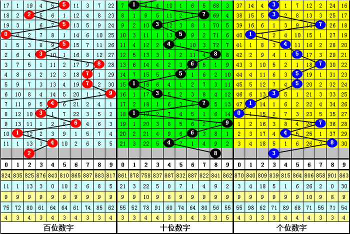 个位分析:最近7期个位分别开出奖号:5、3、1、0、7、4、8,个位振幅为8个点位,本期预计个位号码走小,参考号码3。